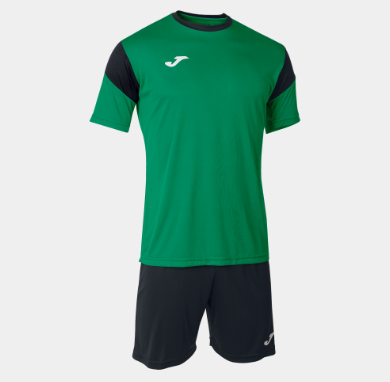 Kit treino composto por camisola, calção e meias.